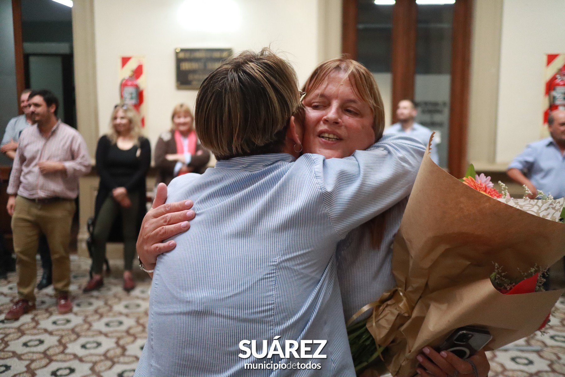 “Este es mi segundo hogar! Les juro que ame mi tarea en cada día y me voy con un enorme agradecimiento a todos mis intendentes, secretarios, jefes de área, compañeros de trabajo; aprendí y me desarrollé como persona y como empleada, siempre dando lo mejor que pude a la comunidad y a la gestión”, expresó profundamente emocionada ante compañeros de trabajo que la despidieron con gran alegría por la tarea cumplida.