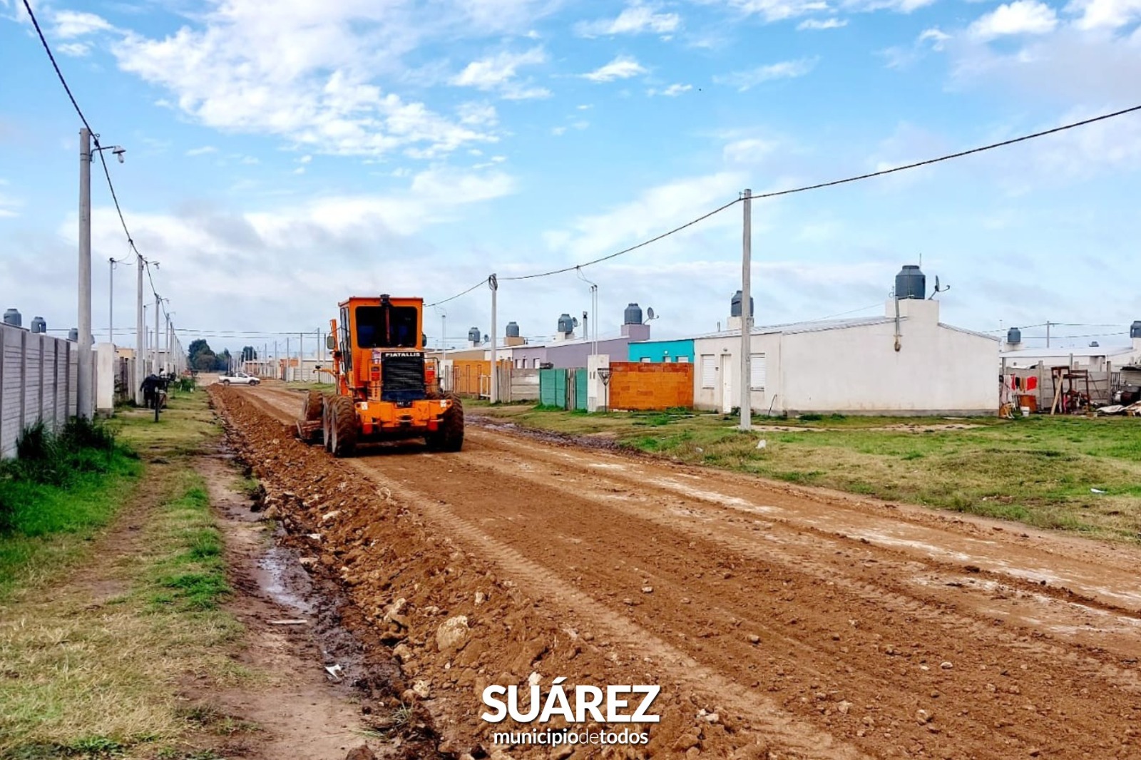 La secretaría de Servicios Públicos realizó tareas de mantenimiento y nivelación de calles en barrio Alto Balcarce sobre Fray Luis Beltrán y Proverbio, en Pueblo Santa Trinidad en Pueyrredón y Montevideo y en barrio Aldea del Volga de Pueblo San José.
