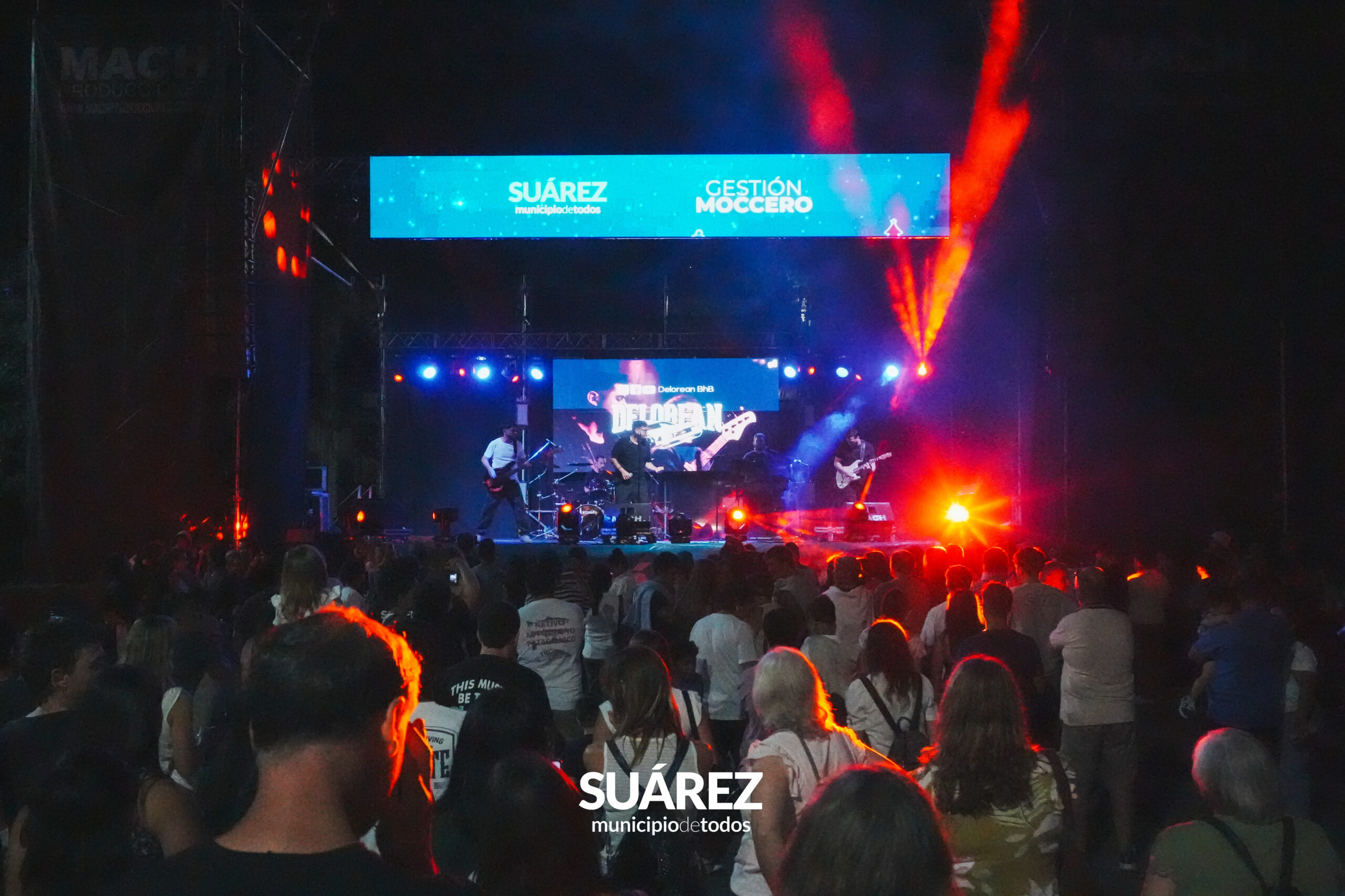 El ritmo continuó con la banda bahiense Delorean, que recorrió clásicos internacionales de los años 80, 90 y actuales, logrando una conexión inmediata con el público y transformando la calle en una verdadera pista a cielo abierto.