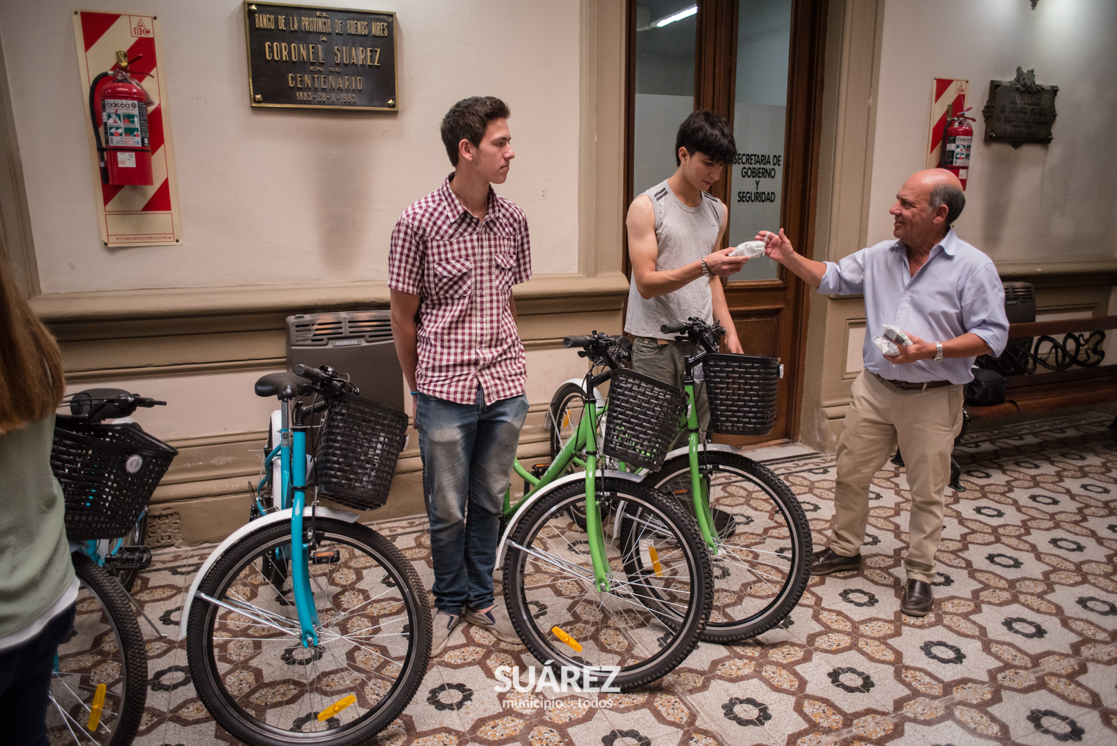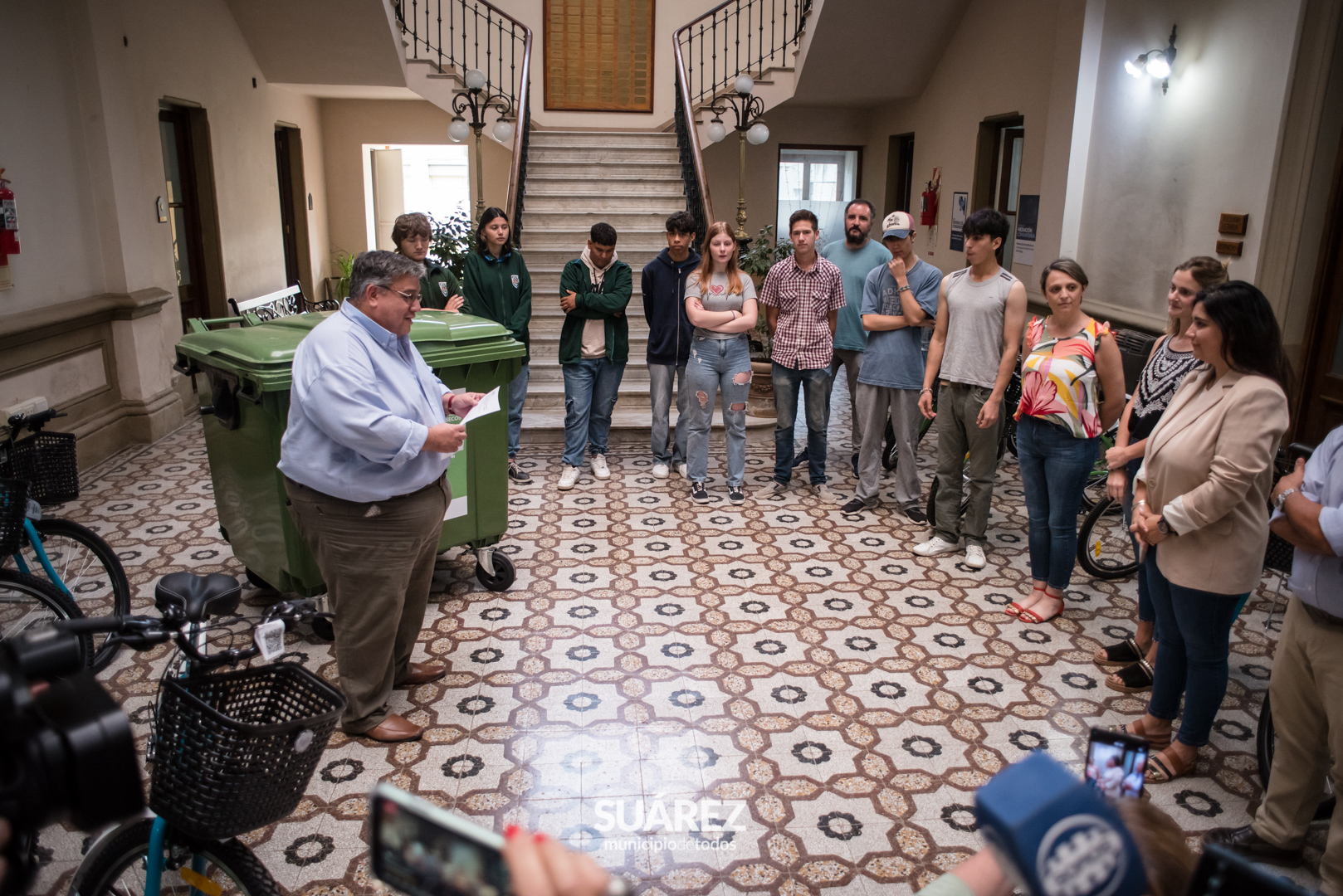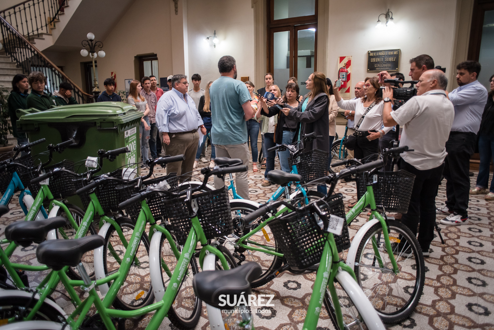 El Intendente Ricardo Moccero acompañado por la Jefa de Gabinete de la subsecretaria de Política Ambiental Carolina Di Giani entregó este viernes 1 de diciembre, bicicletas a alumnos de la Escuela Técnica gestionadas ante el ministerio de Ambiente de la provincia, además de nuevos 25 puntos limpios que se distribuirán en el distrito.