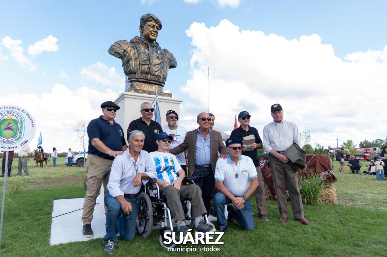 Allí quedó inaugurado el busto del Teniente 1° Roberto Estévez, obra del escultor Rodolfo “Ropo” March, que desde hoy será centinela y memoria viva de Malvinas en nuestra ciudad. Un símbolo de entrega, liderazgo y amor por la Patria.