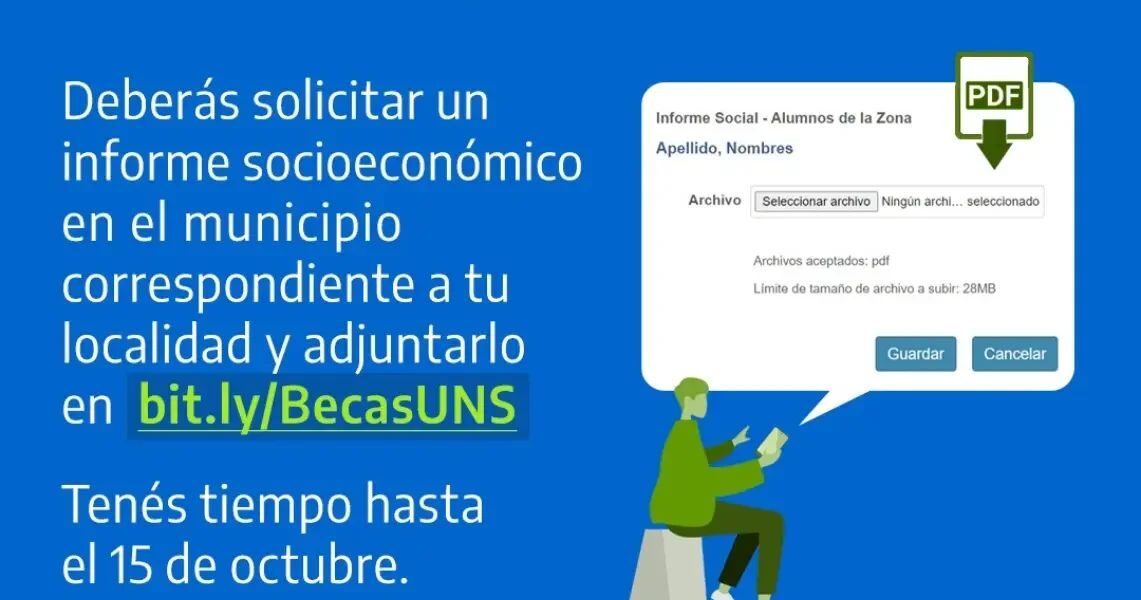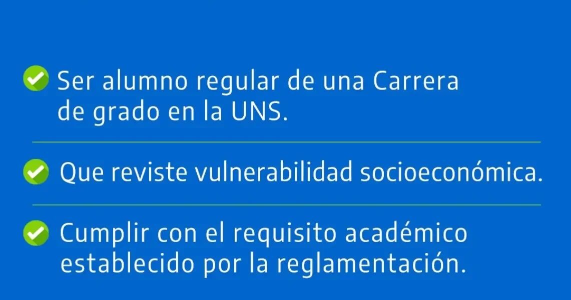 LA UNS ABRIÓ LA INSCRIPCIÓN A BECAS Y SUBSIDIOS 2024 PARA ALUMNOS REGULARES Importante‼️Estará abierta desde el 1 al 30 de septiembre y debe tramitarse en bit.ly/BecasUNS La UNS otorga 4 tipos de subsidios y becas: Económico: consiste en una ayuda económica que se deposita mensualmente. Residencia Estudiantil: se asignan plazas en departamentos equipados, para alojar a estudiantes cuya localidad