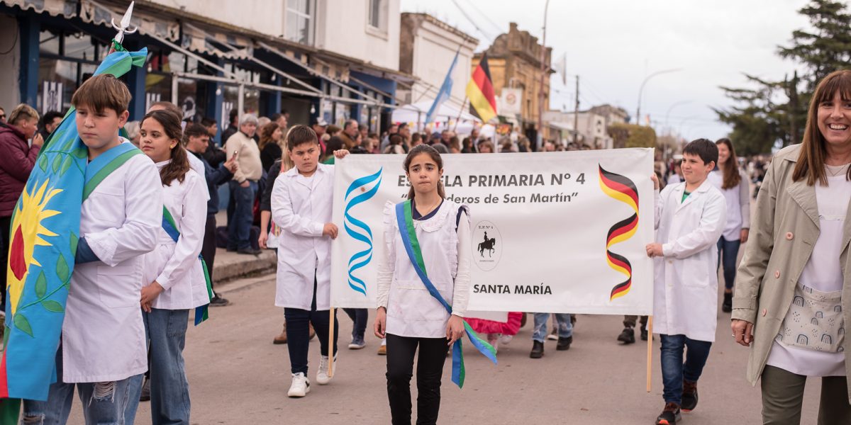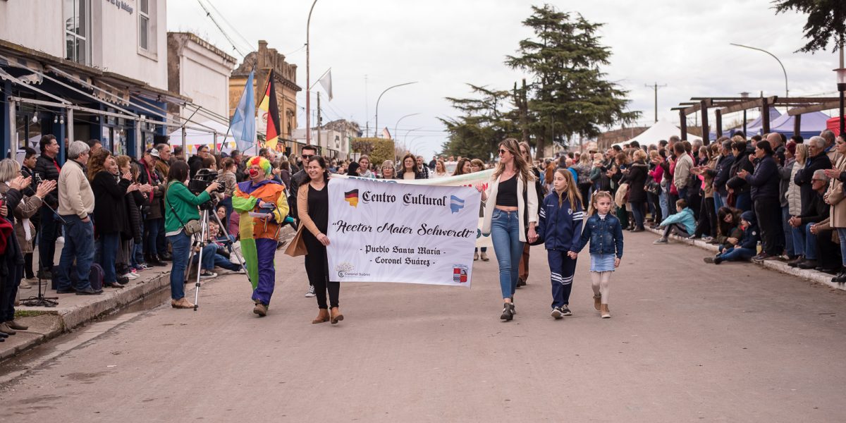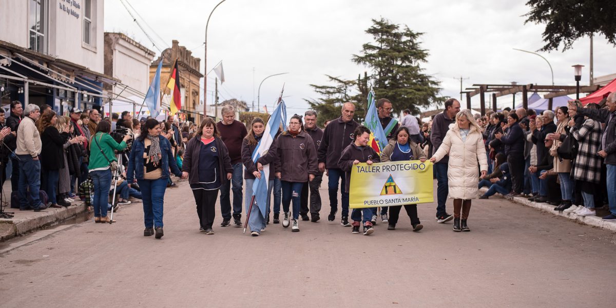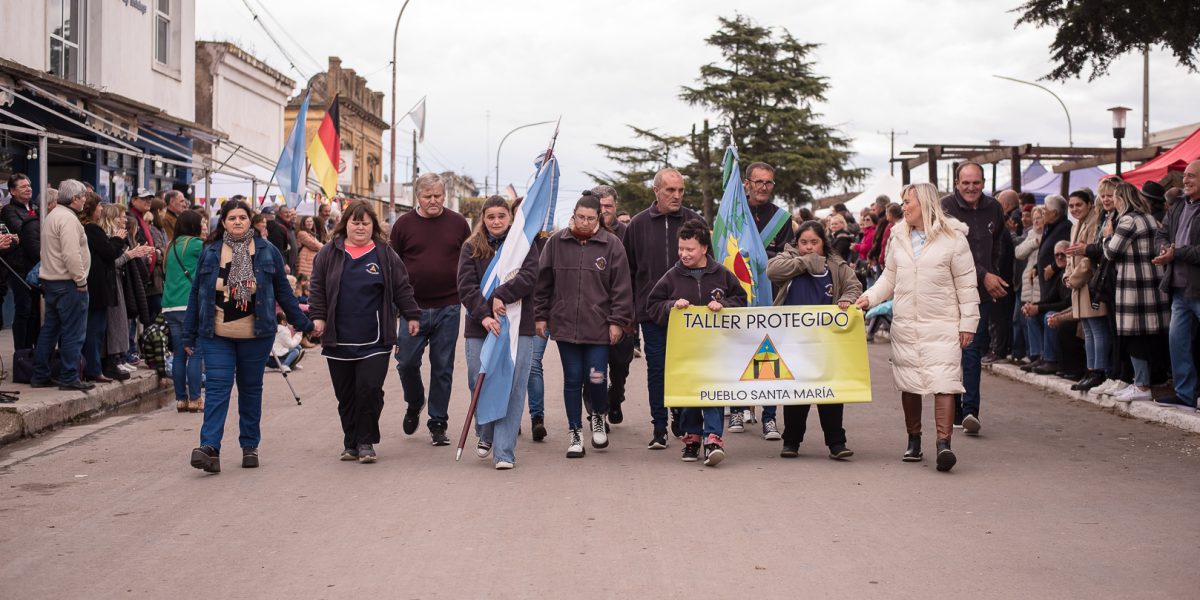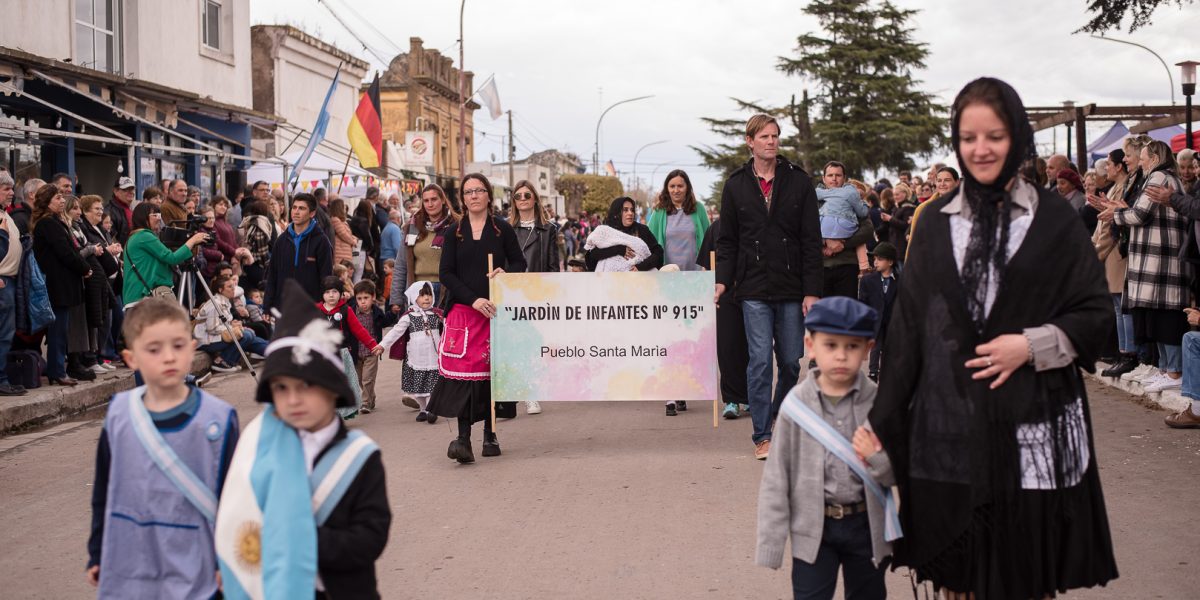 Vecinos y vecinas de Pueblo Santa María, rodearon como ya es tradicional la avenida 11 de Mayo para disfrutar del tradicional y colorido desfile junto a instituciones y organizaciones que conforman su comunidad. Los acordes de la Banda Municipal de Música “Bartolomé Meier” junto a los aplausos, marcaron el inicio del desfile y la máxima expresión de felicidad de un