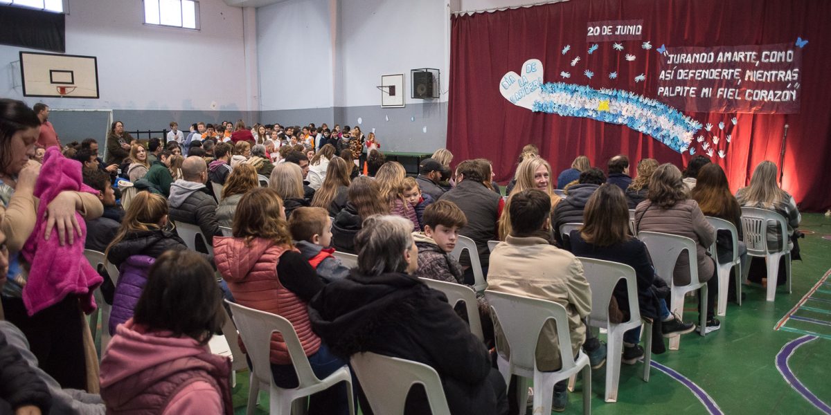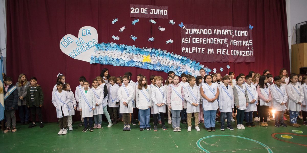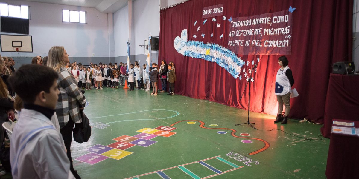 Alumnos de 4to. año de la Escuela N° 9 prometieron lealtad a la Bandera Nacional Durante la mañana de este miércoles 21 de junio, se desarrolló el acto oficial por el Día de la Bandera en la Escuela N° 9 “Manuel Belgrano”. La alumna Maricel Ovando y la docente Érica Peralta se refirieron a la fecha expresando “nos reunimos