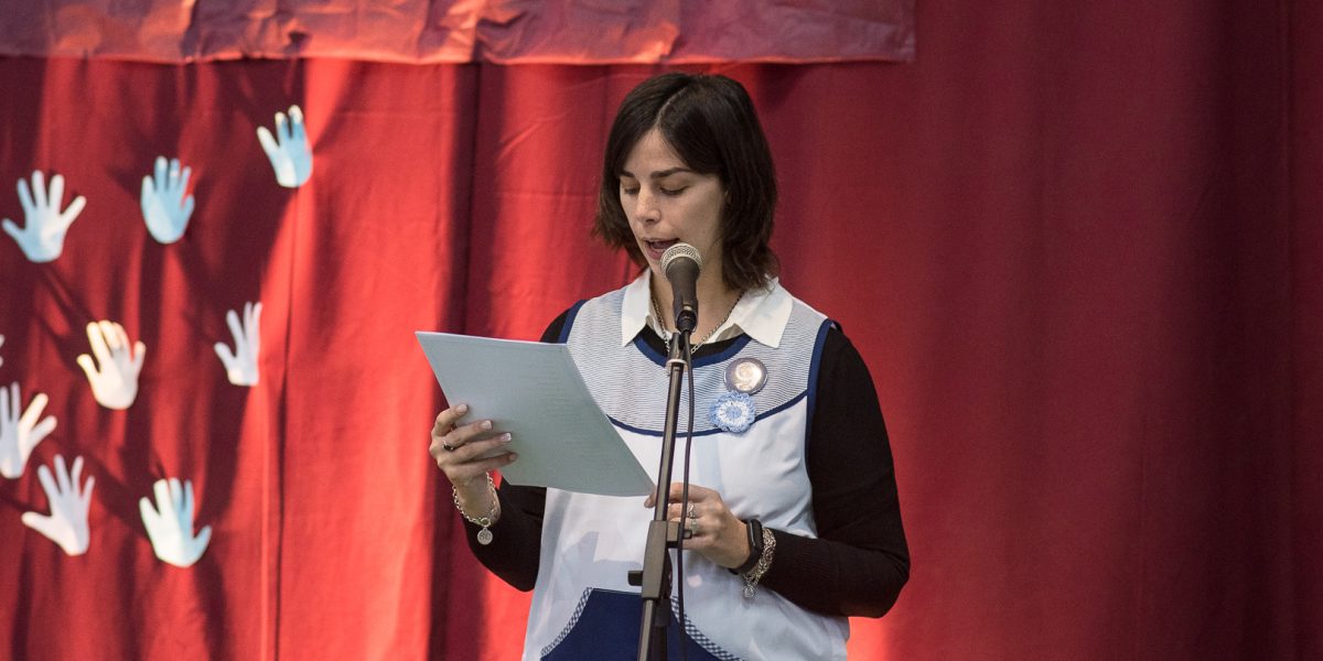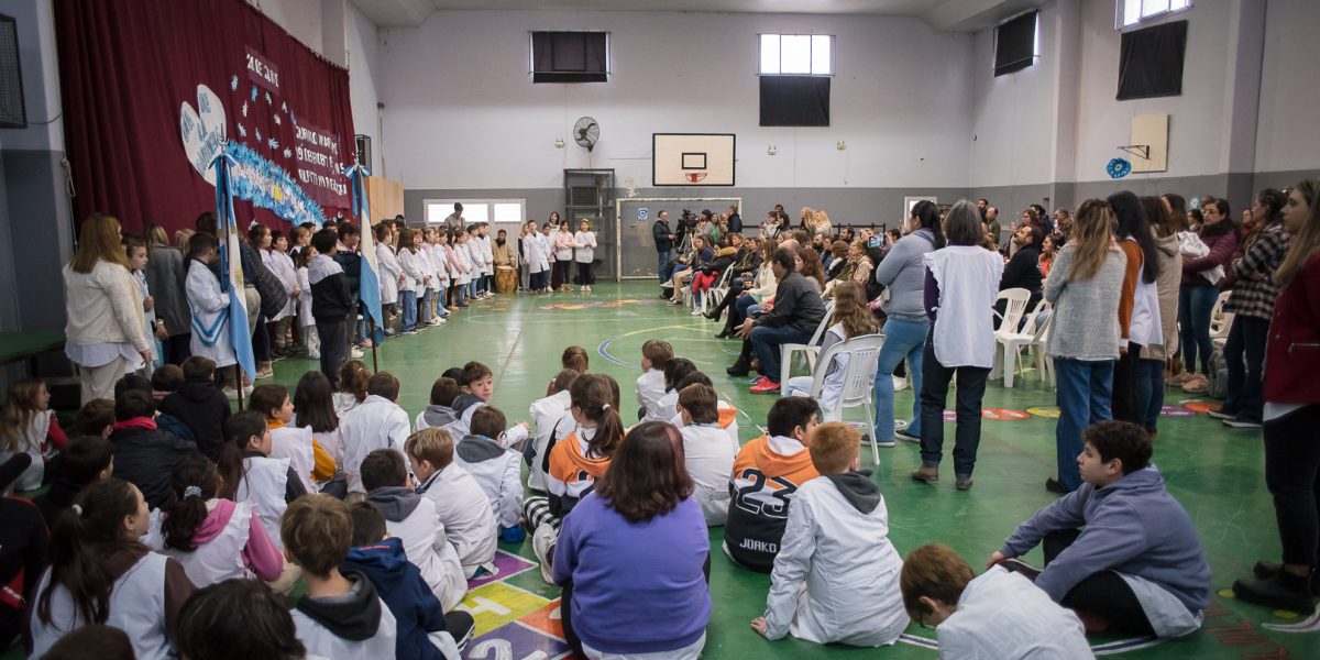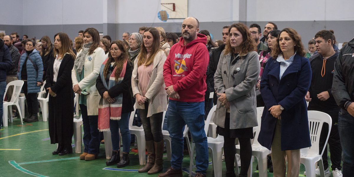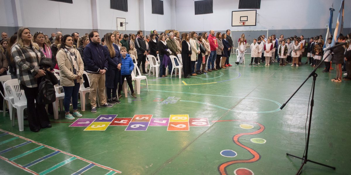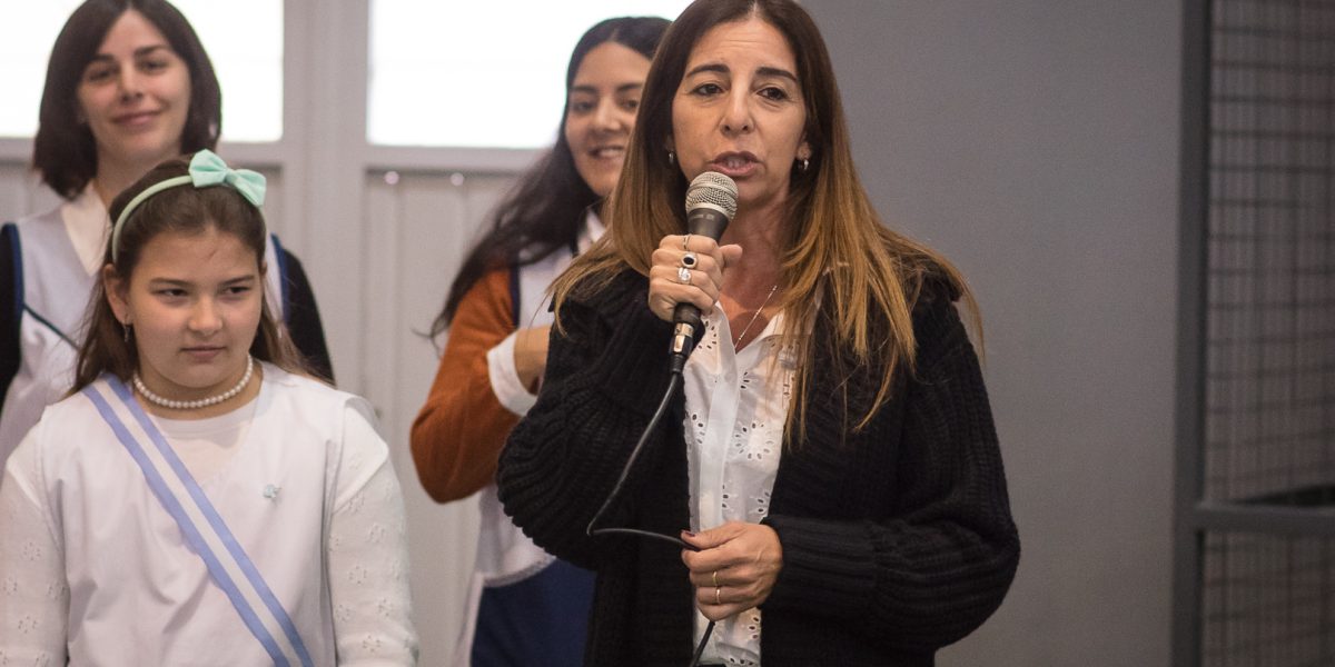 Por su parte, la profesora Andrea Acosta Inspectora Jefa Distrital de Educación repasó la historia del proyecto educativo de la bandera de 400 metros, impulsado hace 10 años, por alumnos de la Escuela Secundaria N° 11 “Mari Wisner” de la localidad, coordinados por el director Gustavo Delgado. “Esta bandera que se gestó entre todos empezó siendo un pequeño proyecto de