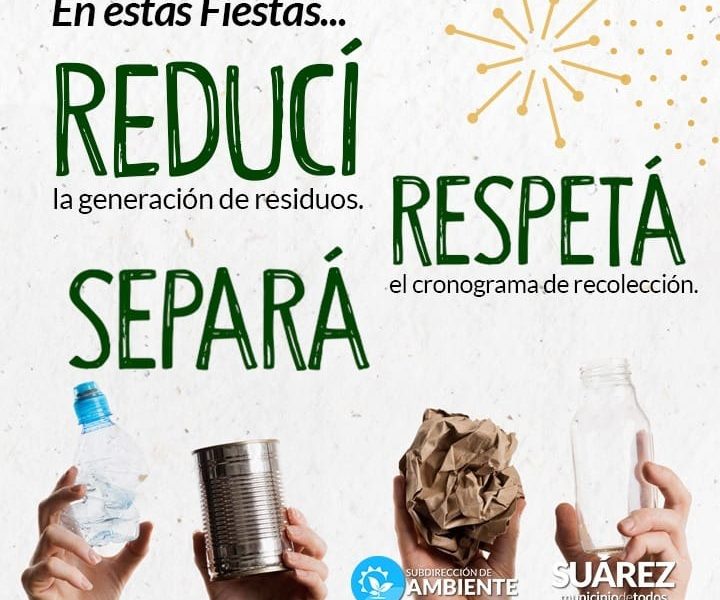 En las fiestas de fin de año el consumo y la generación de residuos crece significativamente. Por eso te pedimos: 1° 👉 REDUCÍ (evita comprar envases y envoltorios que no sean necesarios. Por ejemplo, utiliza revistas para envolver obsequios, no olvides que en tus manos durarán unos pocos minutos y luego en el ambiente meses o años). 2° 👉 SEPARÁ