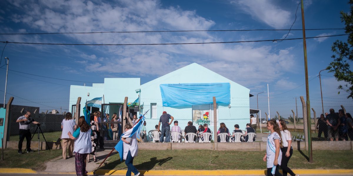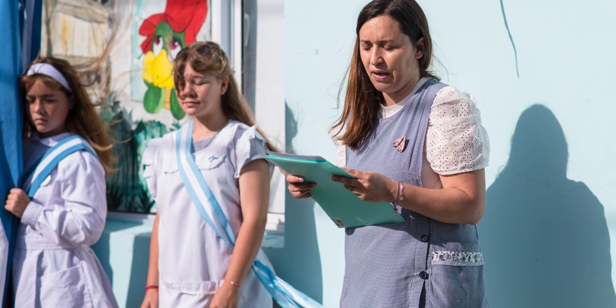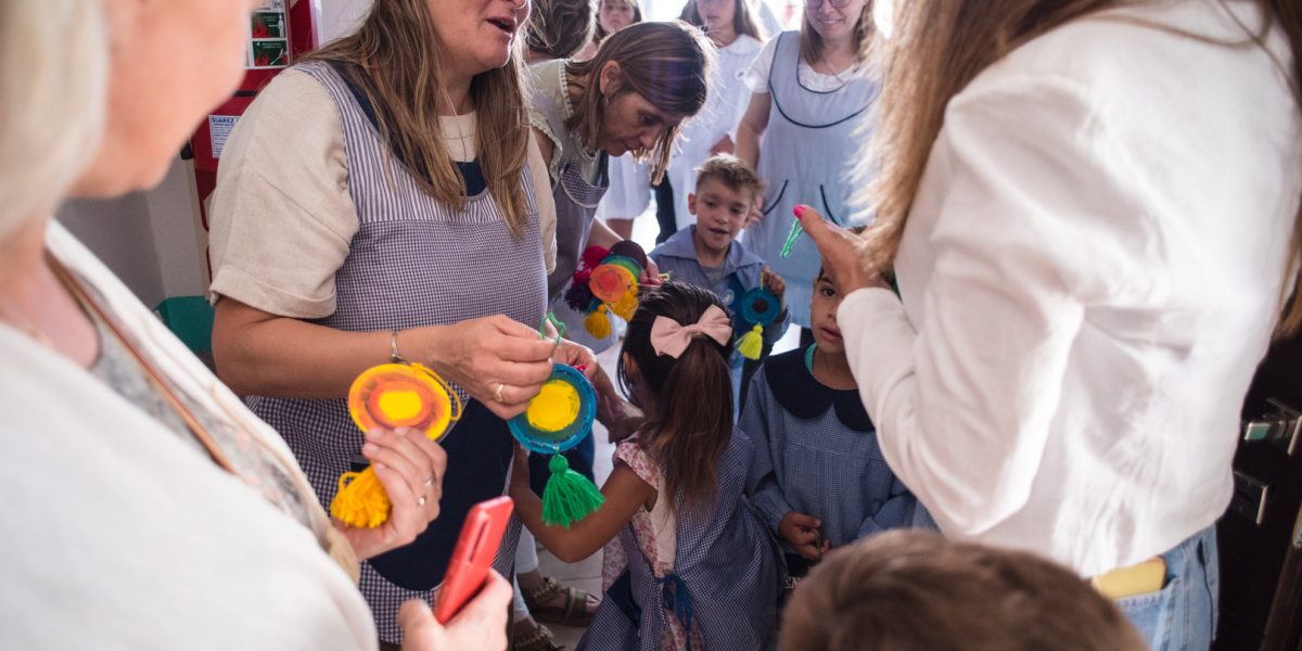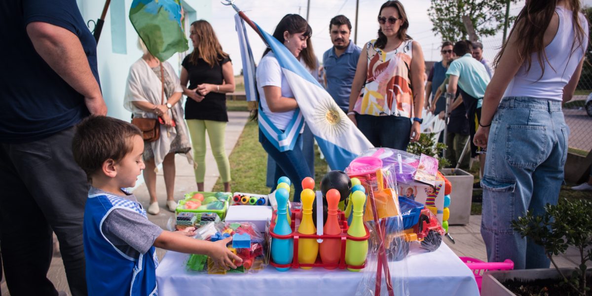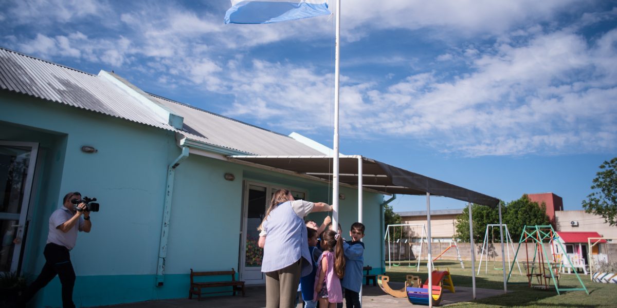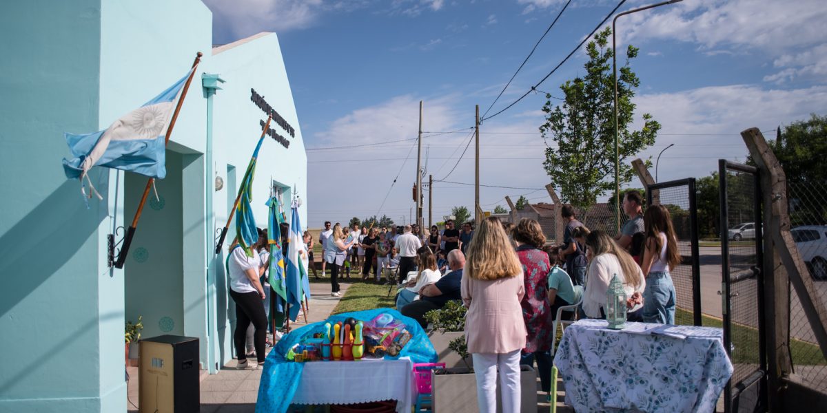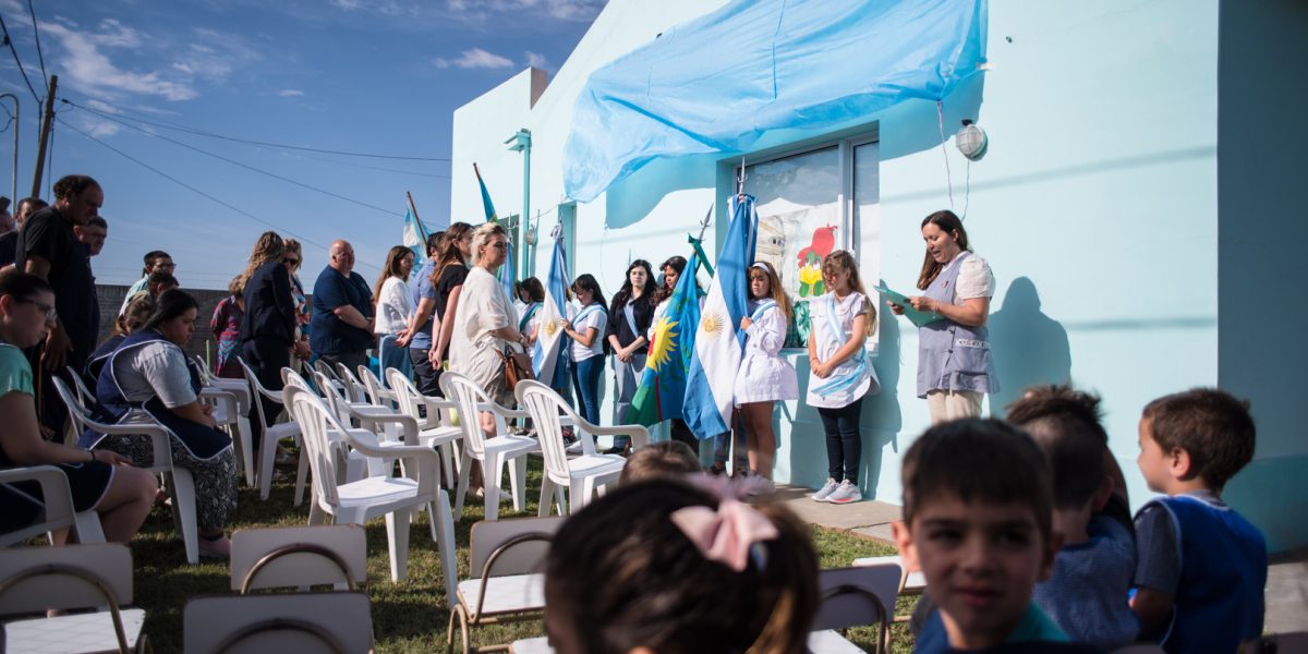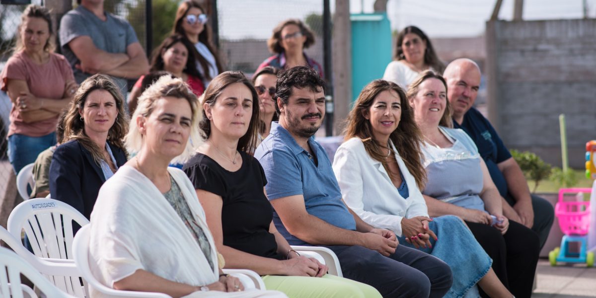 El concejal Mauro Moccero en representación del Intendente Ricardo Moccero junto a la Jefa Distrital de Educación Andrea Acosta; acompañó este martes 11 de noviembre a la comunidad educativa del Jardín N° 915 de Pueblo Santa María en la imposición del nombre “María Elena Walsh”. En la oportunidad, la directora del establecimiento Victoria Stein explicó a los niños y las