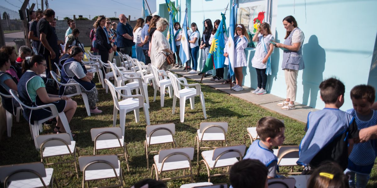 El acto se desarrolló en el Quincho del Hogar de Ancianos “Domingo Goñi” Participaron la flamante directora del Hogar de Ancianos Marina Sauer, la Inspectora Jefa Distrital de Educación Andrea Acosta, la ex directora de la residencia de adultos Guillermina Alebuena y la docente Ráquel Lázaro. Portaron la Bandera Nacional: Schillereff Alfredo Edgardo siendo sus escoltas Schmidt Juan Carlos y