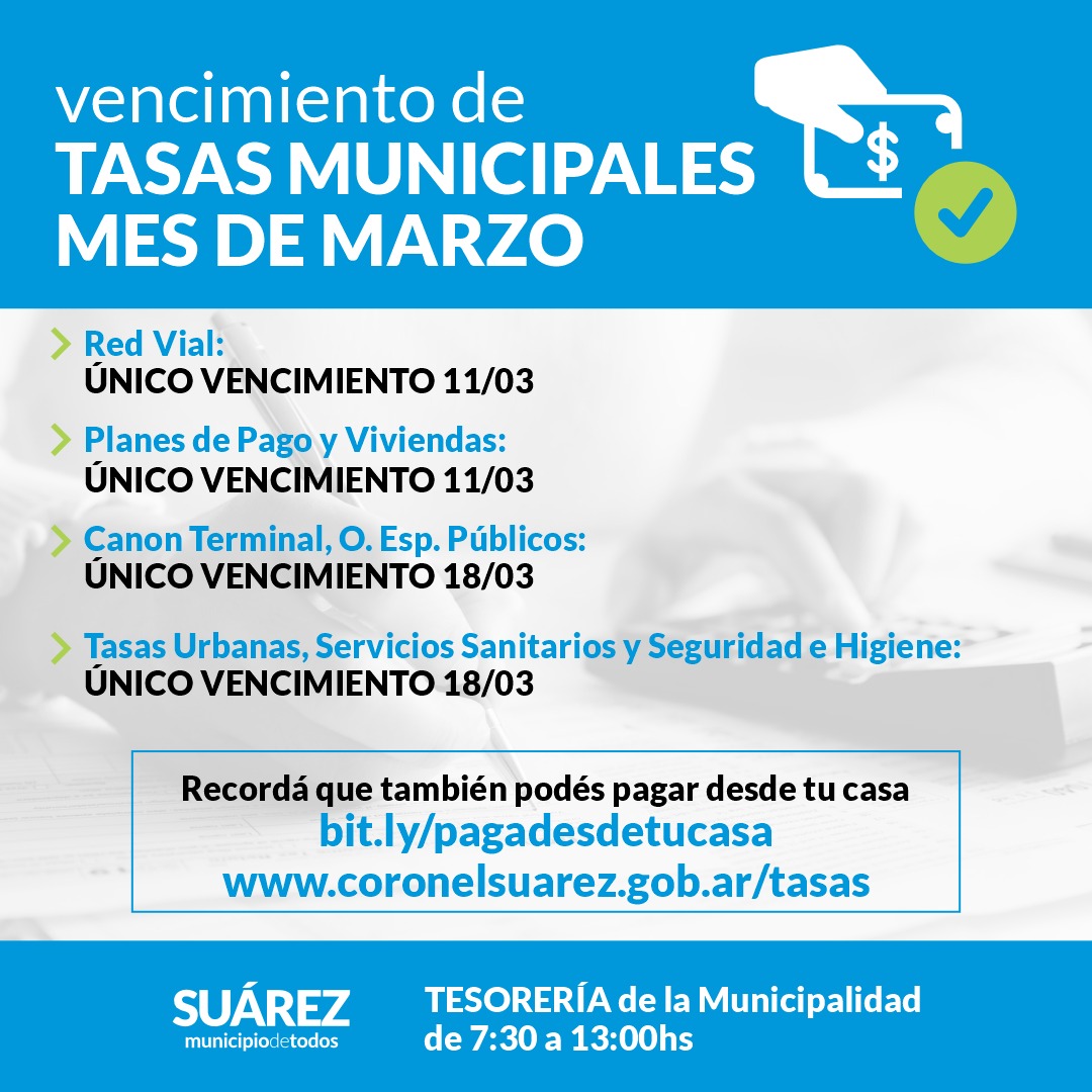 Las cajas de TESORERÍA de la Municipalidad atienden en el horario de 7.30 a 13.00.