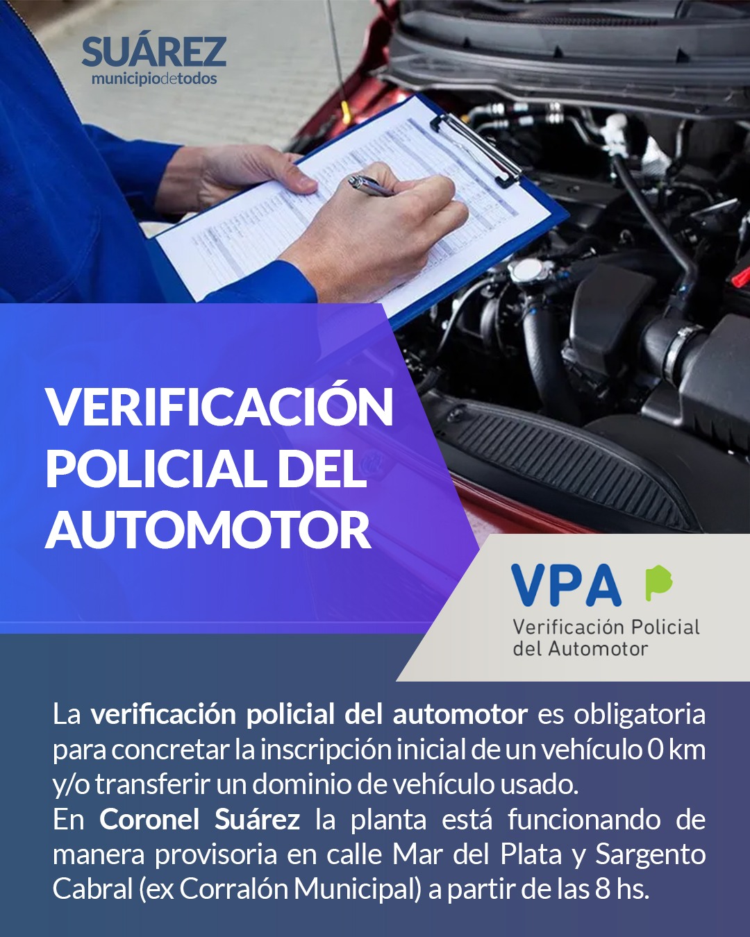 La verificación policial del automotor es obligatoria para concretar la inscripción inicial de un vehículo 0 km y/o transferir un dominio de vehículo usado.